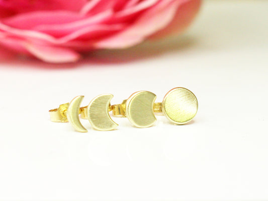 Phases of the Moon Studs in 9ct or 14ct Gold