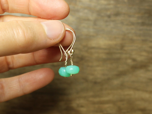 Dangly Earrings in 9ct Gold with Chrysoprase Beads