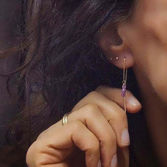 Threader Earrings in 14ct Yellow Gold with Fair Trade Gems