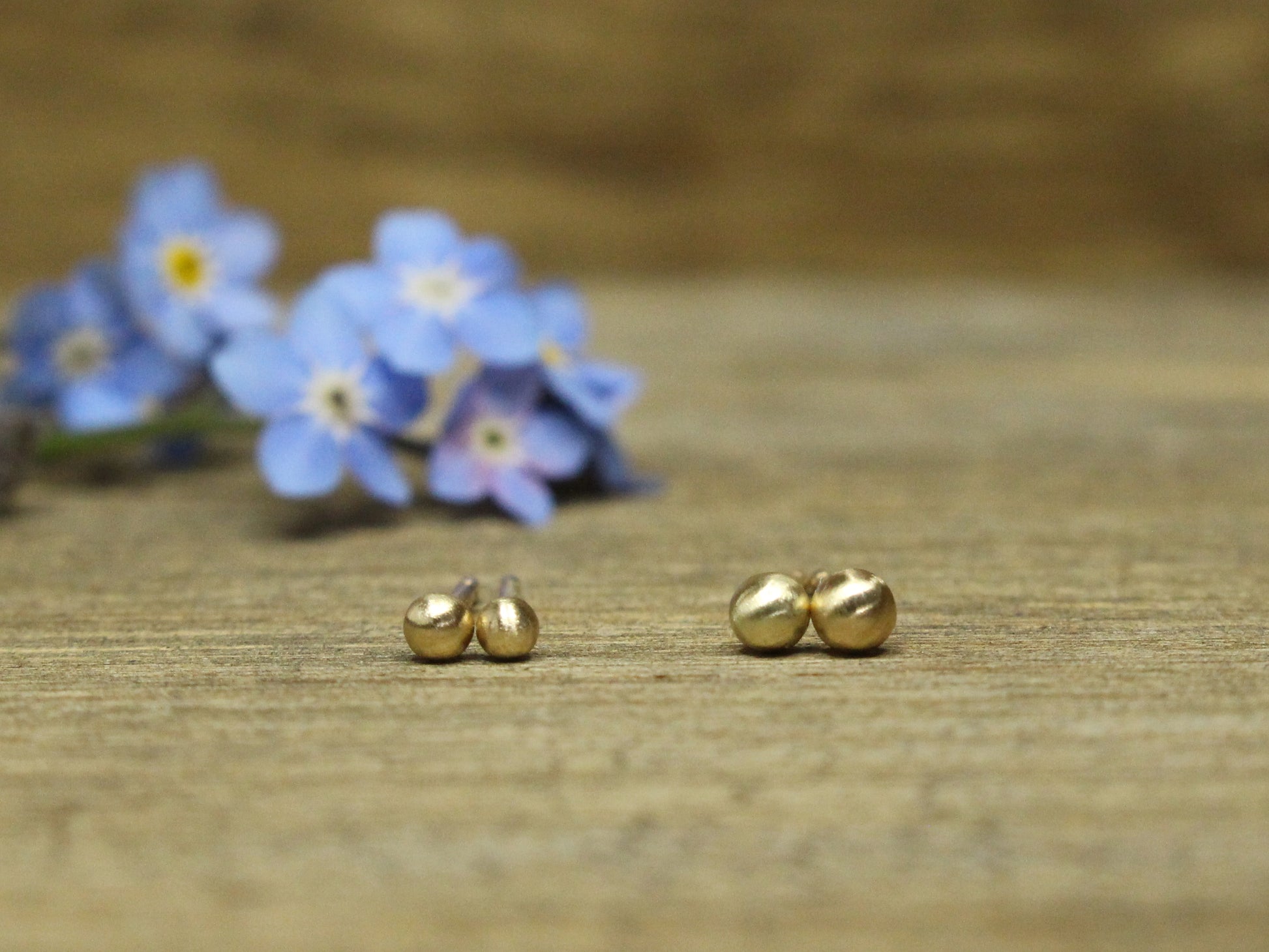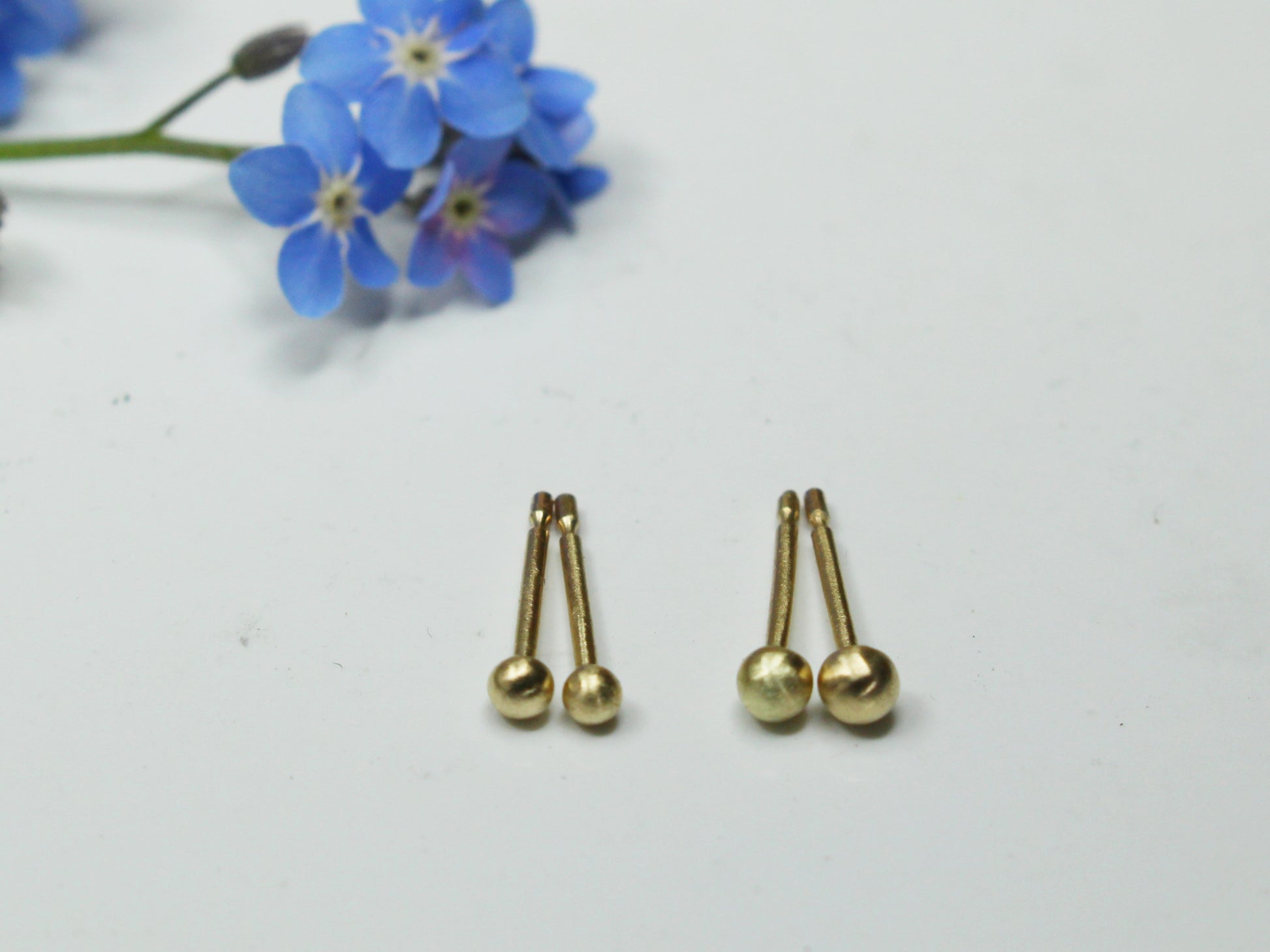 Tiny stud earrings, with little balls in varying sizes, which you can choose from the list. These have a brushed finish, please request it in case you prefer a polished finish.